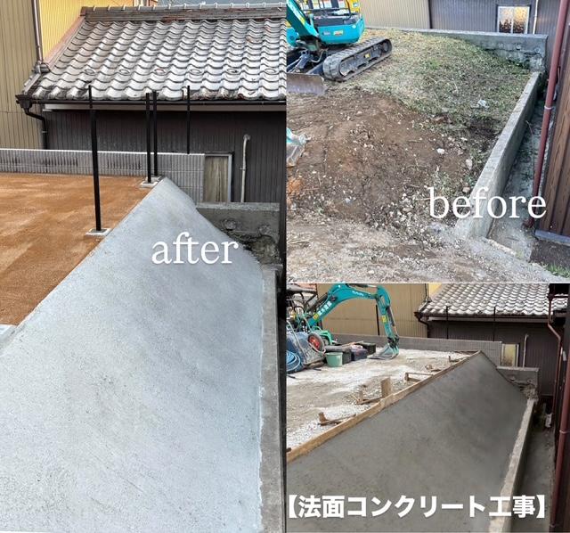 法面にコンクリートをされる方増えてます。 法面の草刈りはとっても大変なんです。 傾斜によっては危険性が高まるのとなんといっても足場の不安定さ^^; 今回も法面にコンクリートをさせていただきました。